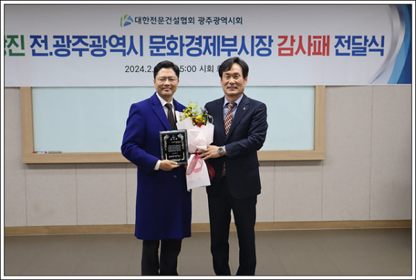 HOME > KOSCA광주 소개 > 김광진 전 문화경제부시장 감사패 전달 > 협회활동사항