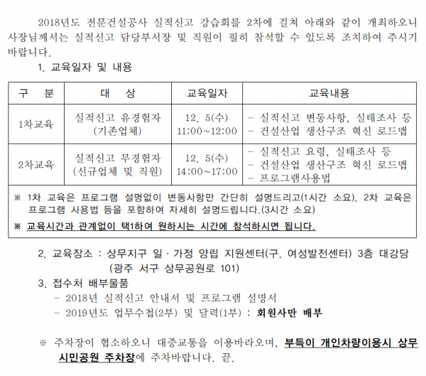 HOME > 회원전용공간 > 2018년 실적신고 강습회 개최 안내 > 공지사항