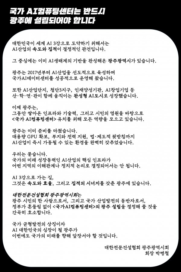 <“국가 AI컴퓨팅센터>는 반드시 광주에 설립되어야 한다는
