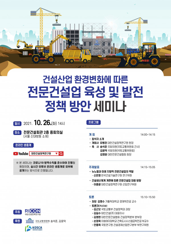 전문건설업 육성·발전 정책 세미나 개최 안내
