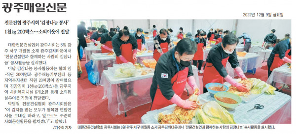 HOME > KOSCA광주 소개 > 전문건협 광주시회 \'김장나눔 봉사\' (광주매일신문) > 보도자료