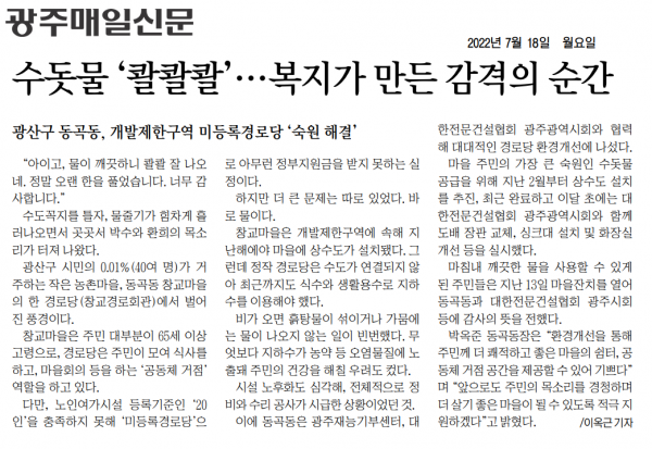 수돗물 '콸콸콸'...복지가 만든 감격의 순간 (광주매일신문)