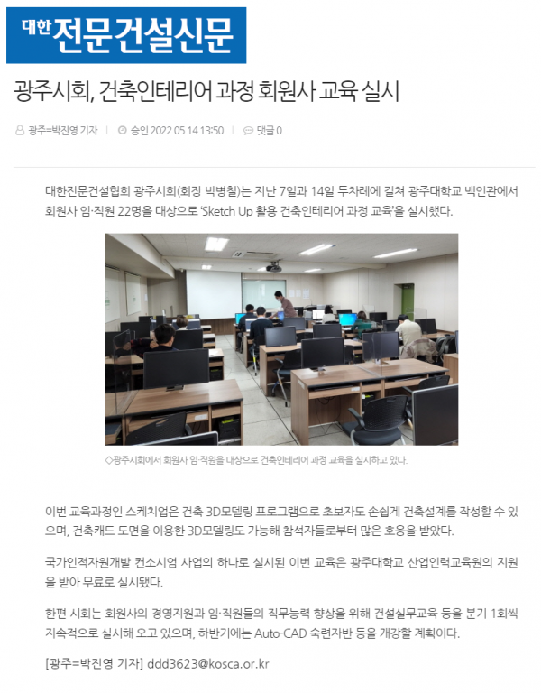 광주시회, 건축인테리어 과정 회원사 교육 실시 (대한전문건설신문)