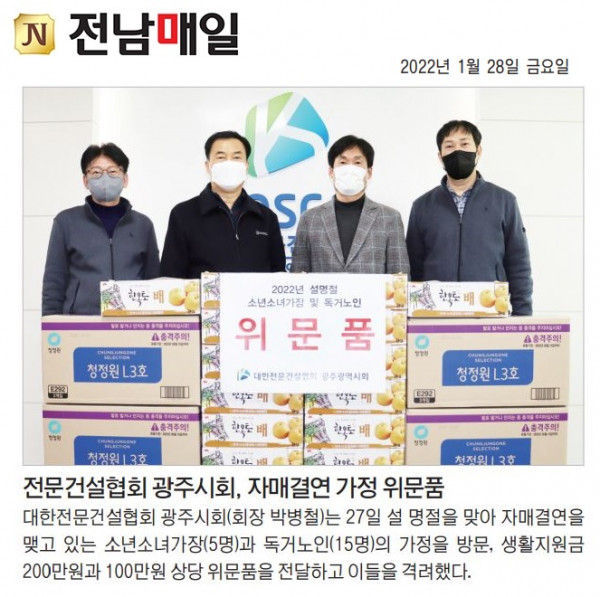 광주시회, 설 명절 맞아 소년소녀가장·독거노인 위문(대한전문건설신문)