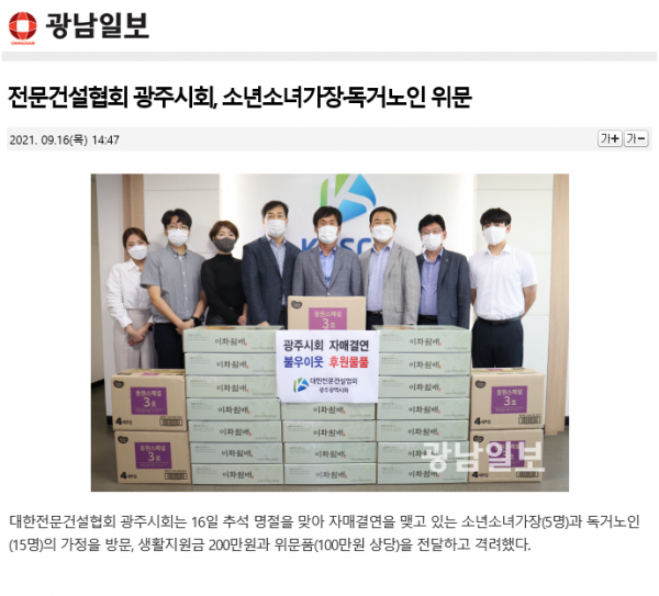 전문건설협회 광주시회, 소년소녀가장.독거노인 위문 (광남일보)