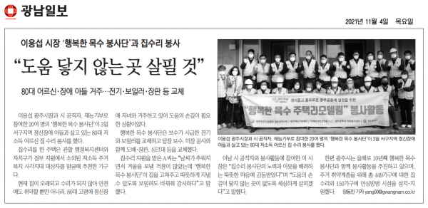 행복한 목수 봉사단과 집수리 봉사활동 (호남매일)