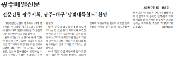 HOME > KOSCA광주 소개 > 전문건협 광주시회, 광주-대구\'달빛내륙철도\'환영(광주매일신문) > 보도자료