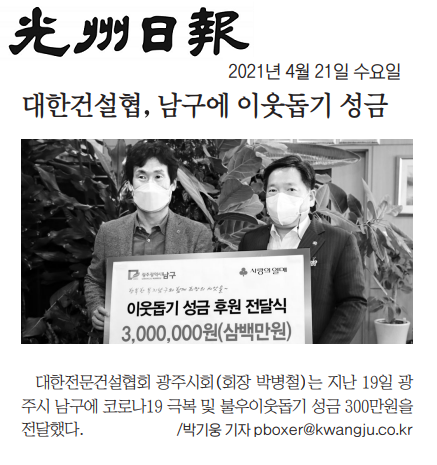 대한전문건설협, 남구에 이웃돕기 성금(광주일보)