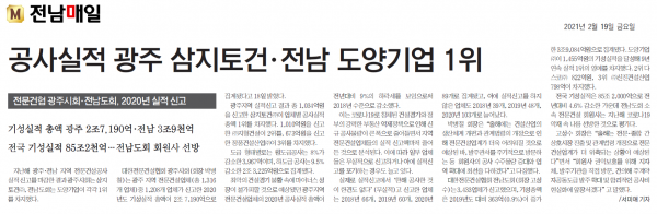 공사실적 광주 삼지토건.전남 도양기업 1위 (전남매일)