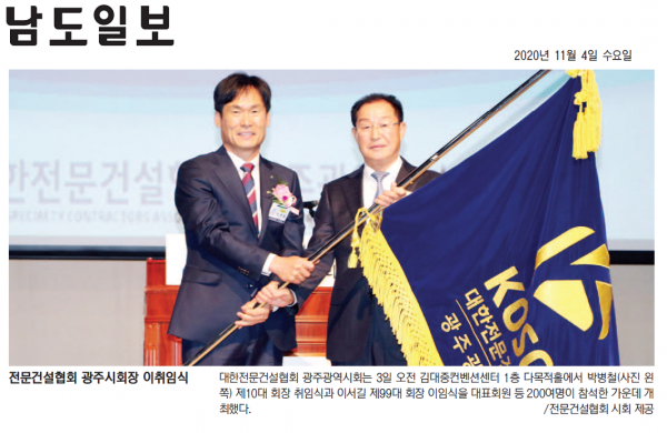 박병철 전문건설협회 광주시회 회장 취임 (무등일보)