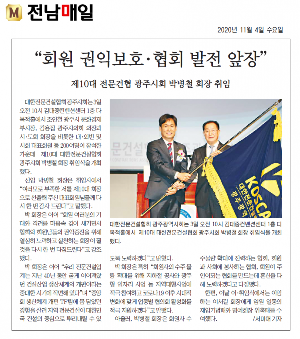 박병철 전문건설협회 광주시회장 취임 (광주매일신문)