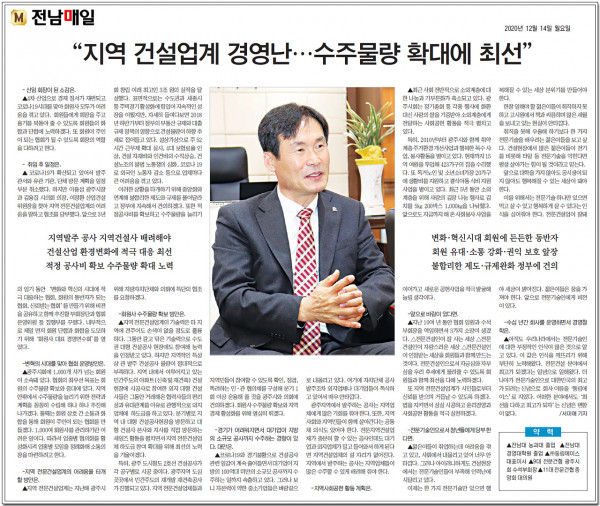 "지역건설업계 경영난...수주물량 확대에 최선"(전남매일신문)