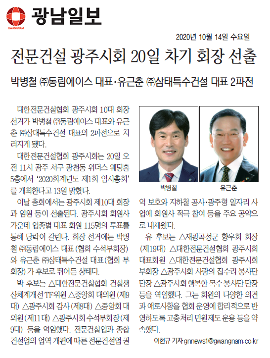 전문건협 광주시회, 새 회장선거 2파전 (전남매일신문)