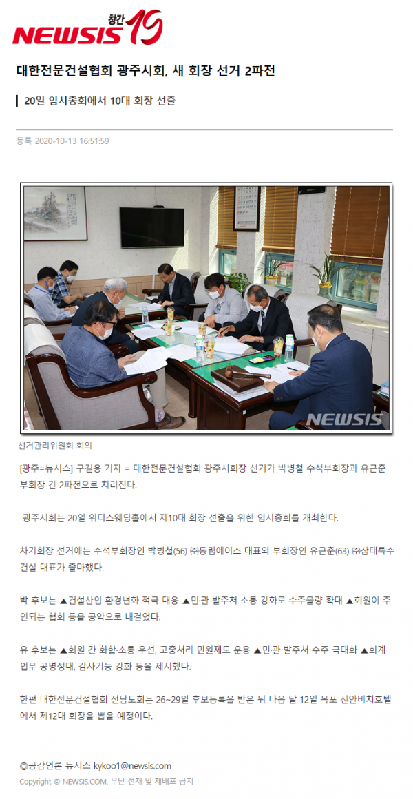 차기 전문건설협회 광주시회장은 누구? (무등일보)