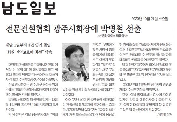 전문건설협 광주시회장에 박병철 대표 (광주매일신문)