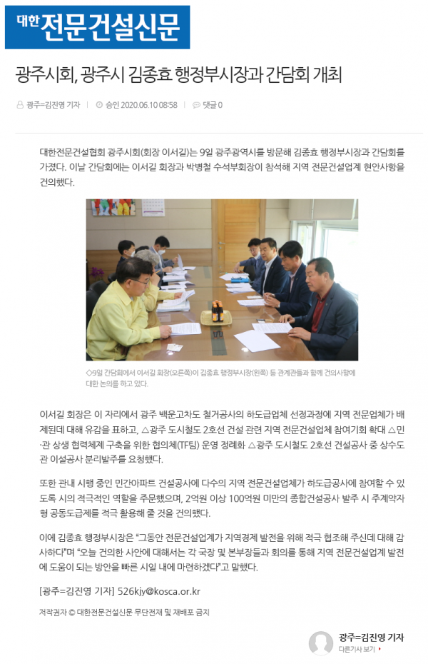 HOME > KOSCA광주 소개 > 행정부시장에 지역 전문건설업계 현안 사항 건의 (대한전문건설신문) > 보도자료