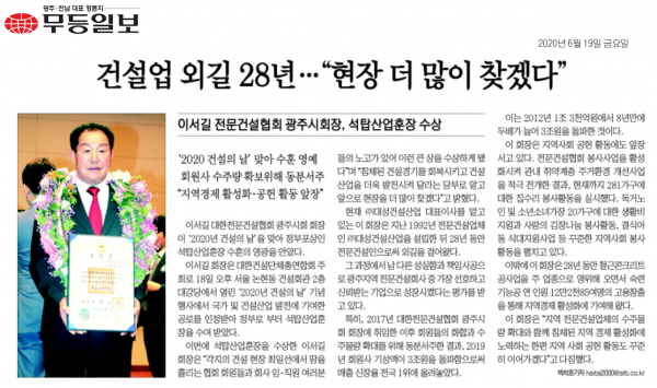 건설업 외길 28년 "현장 더 많이 찾겠다" (무등일보)