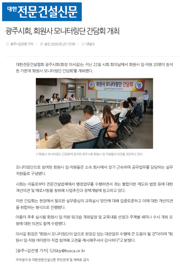 광주시회, 회원사 모니터링단 간담회 개최(대한전문건설신문)