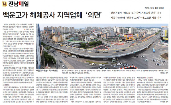 백운고가 해체공사 지역업체 '외면' (전남매일신문)