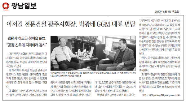 "GGM 신축공사 참여 배려에 감사" (무등일보)