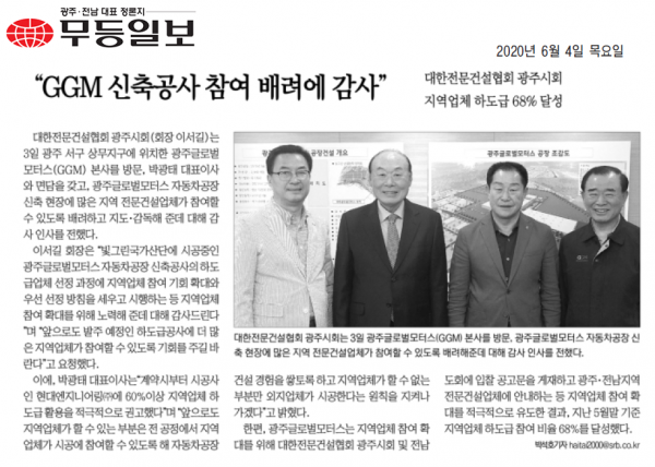 "GGM 신축공사 참여 배려에 감사" (무등일보)