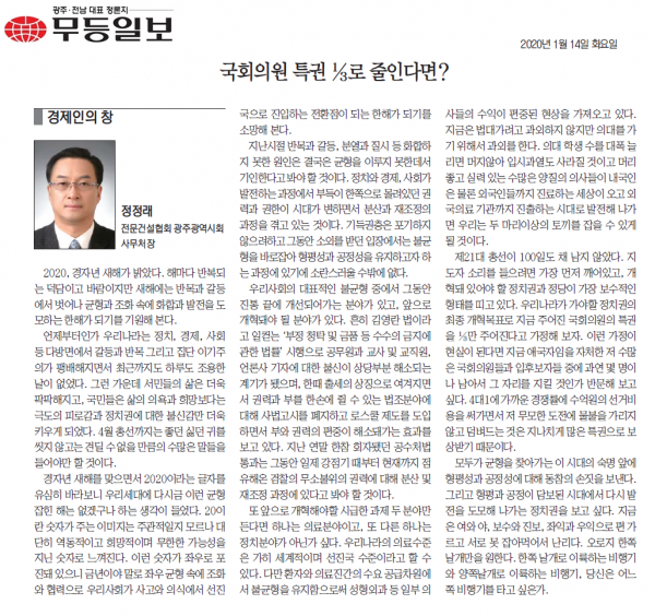 국회의원 특권 1/3로 줄인다면? (무등일보)