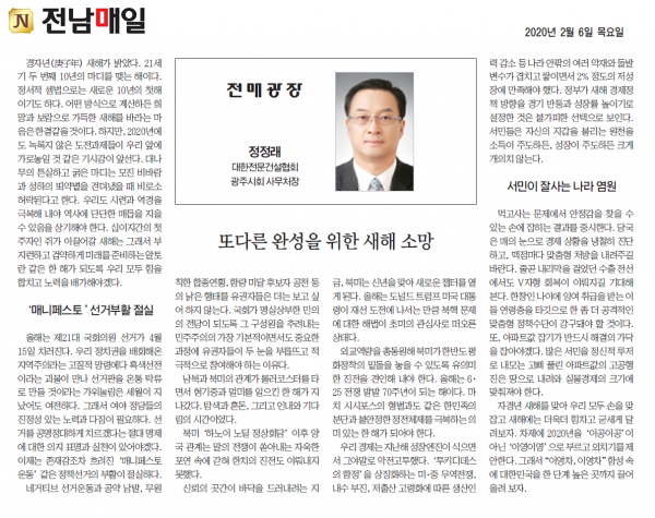 또다른 완성을 위한 새해 소망 (전남매일신문)