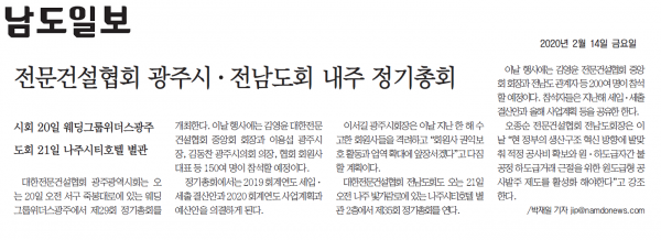 전문건설협회 광주시.전남도회 내주 정기총회 (남도일보)