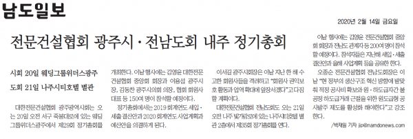 전문건설협회 광주시.전남도회 내주 정기총회 (남도일보)