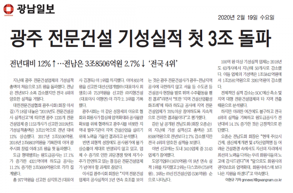 광주 전문건설 기성실적 첫 3조 돌파 (광남일보)