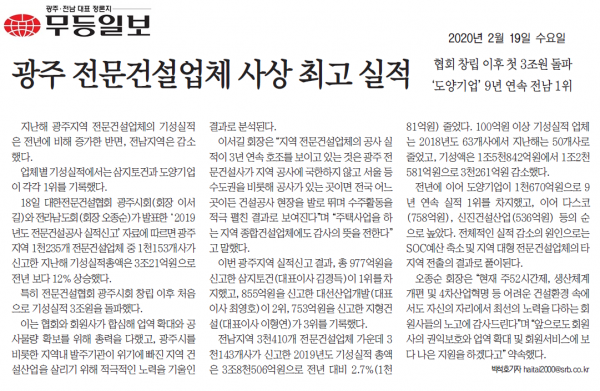 광주 전문건설업체 사상 최고 실적 (무등일보)