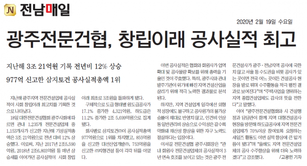 광주전문건협, 창립이래 공사실적 최고 (전남매일신문)