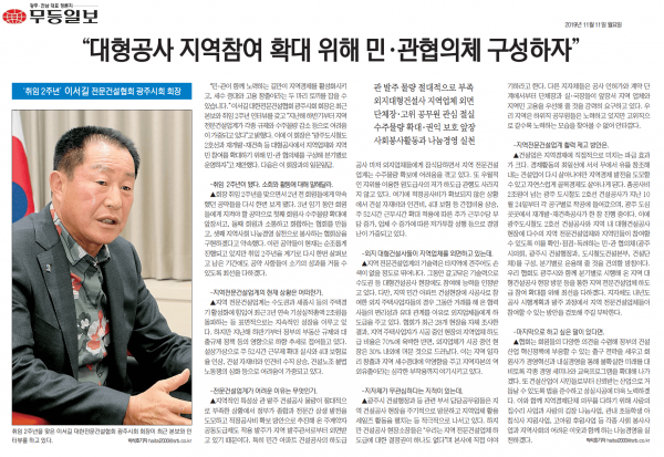 "대형공사 지역참여 확대 위해 민.관협의체 구성하자" (무등일보)