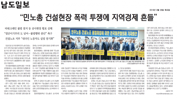 '민노총 건설현장 폭력 투쟁에 지역경제 흔들' (남도일보)