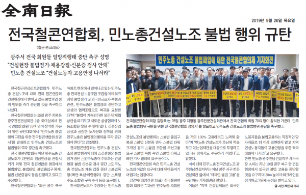 전국철콘협의회, 민노총건설노조 불법 행위 규탄 (전남일보)
