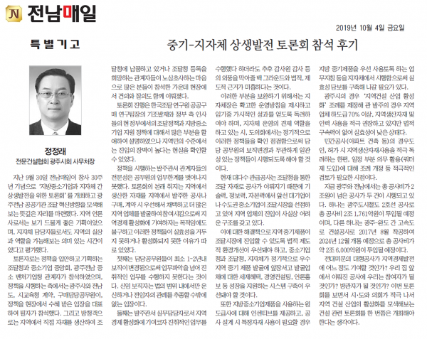 중기-지자체 상생발전 토론회 참석 후기 (전남매일신문)