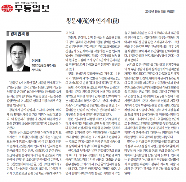 창문세(稅)와 인지세(稅) (무등일보)