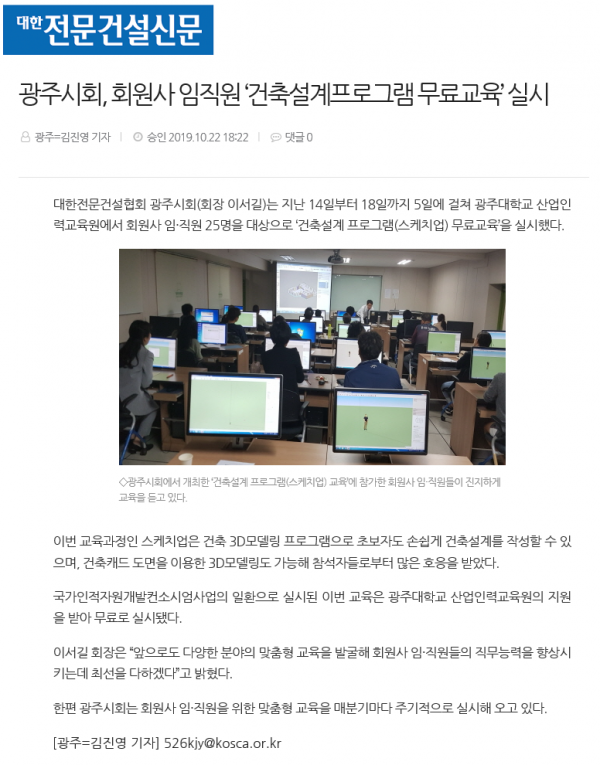 광주시회,회원사임직원 '건축설계프로그램 무료교육'실시(대한전문건설신문)