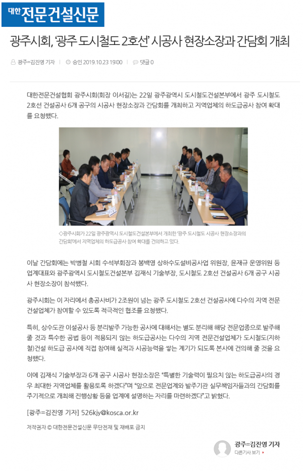 광주시회,'광주 도시철도2호선'시공사현장소장과간담회개최(대한전문건설신문)