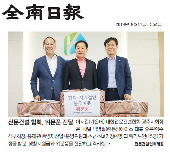대한전문건설협회 광주광역시회 소외계층 찾아 위문 (남도일보)