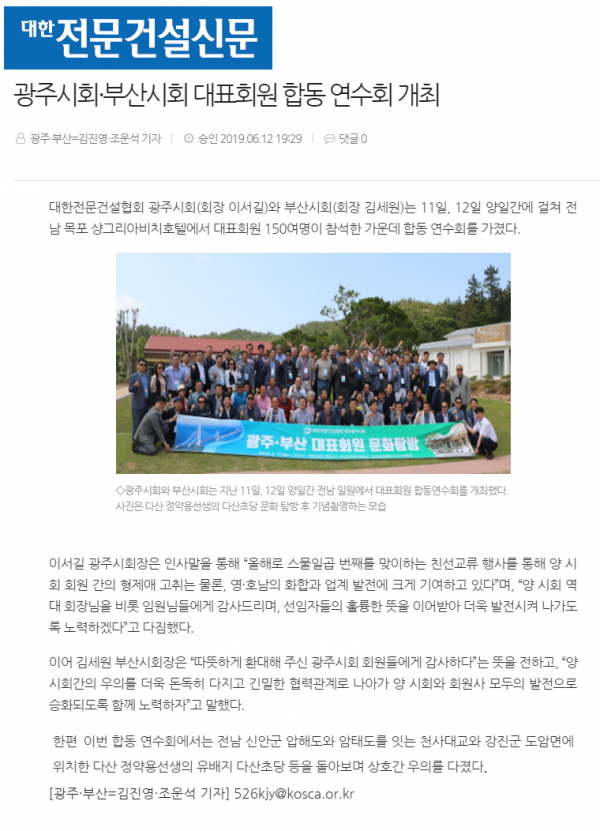 광주시회.부산시회 대표회원 합동 연수회 개최 (대한전문건설신문)