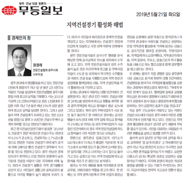 지역건설경기 활성화 해법 (무등일보)