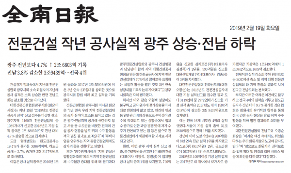 "건설산업 혁신 실행 원년 철저 대비"(전남일보)