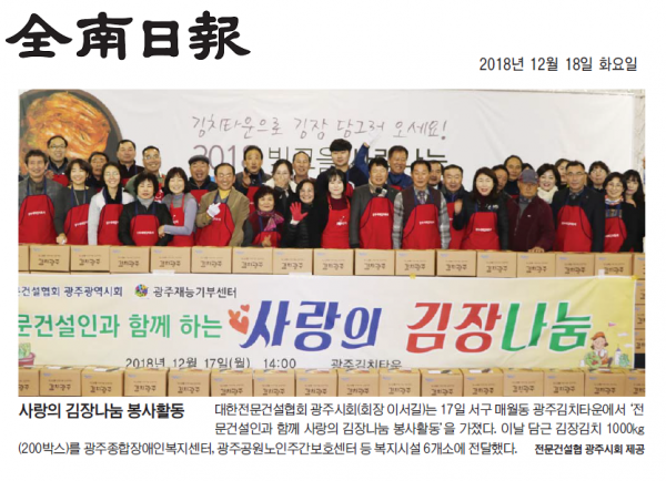 대한전문건설협회 광주시회, 김장 봉사활동(광남일보)