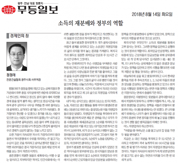 소득의 재분배와 정부의 역할 (무등일보)