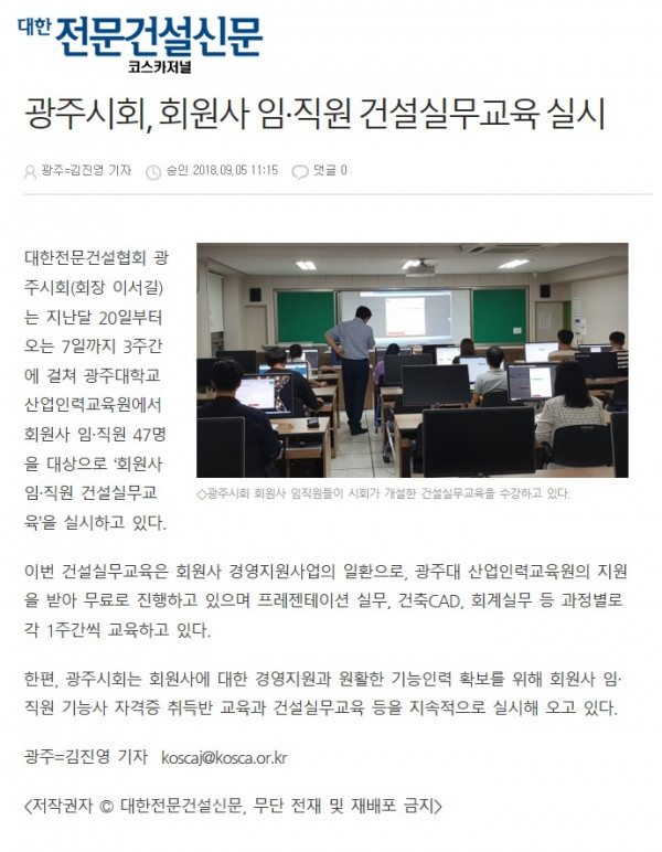 광주시회, 회원사 임·직원 건설실무교육 실시(대한전문건설신문)