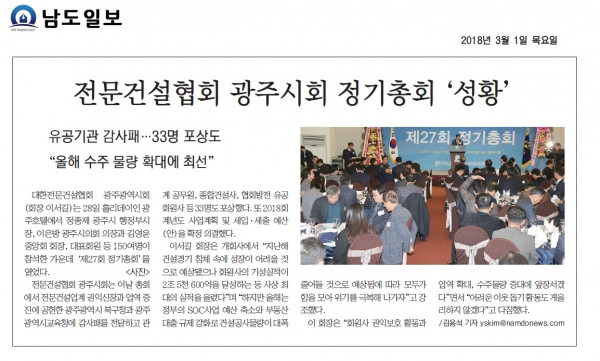 광주시회, 제27회 정기총회 (대한전문건설신문)