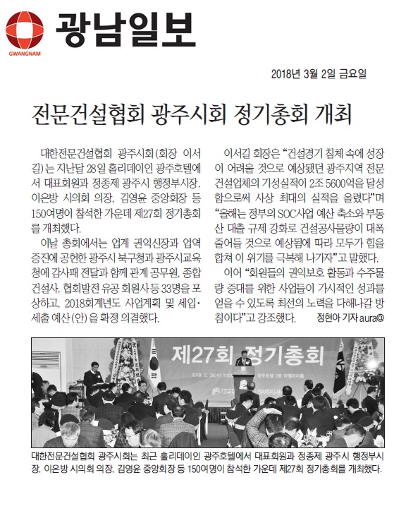 광주시회, 제27회 정기총회 (대한전문건설신문)