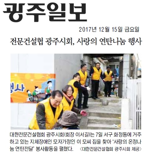 전문건설협 광주시회, 사랑의 연탄나눔 (광주매일신문)