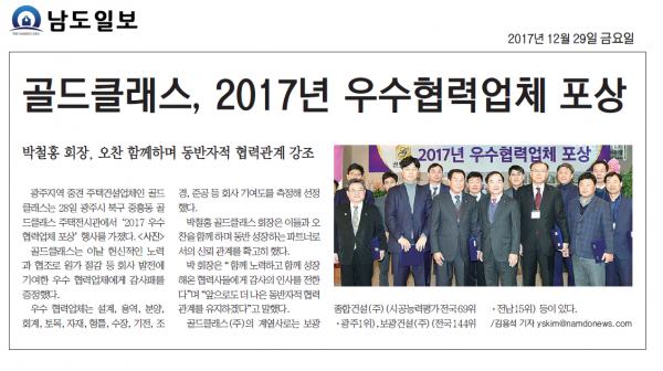 골드클래스,2017년 우수협력업체 포상 (남도일보)
